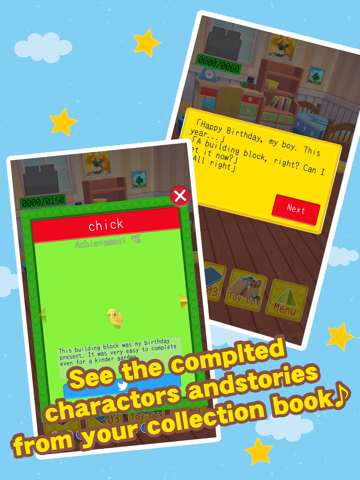 You can check the completed story and building blocks with your collection book.