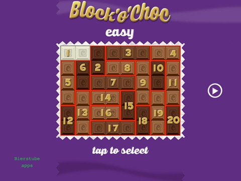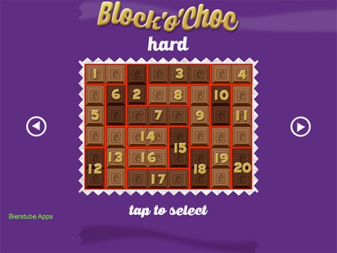 A tasty new Unblock game - with chocolate blocks! Your objective is to guide the white chocolate block to the exit by removing the brown ones. But they can only move in one direction; the vertical ones can only move vertically, and the horizontal ones can only move horizontally, so you need to plan every move carefully!