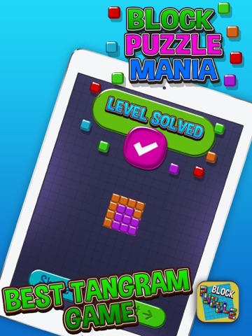 Get the best logic training game ever! Block Puzzle Mania is a brand new app on the market that helps you Test Your Brain and Fit Colorful Tangram Shapes In a Grid. You just need to slide and fit the blocks into a square in the center of the screen. And its totally FREE to download and play! Go ahead, get it this moment and get even smarter!