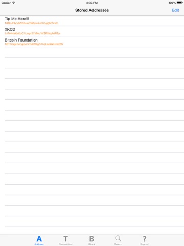 You can save your favourite addresses, transactions and blocks to the home tabs for easy access and you can also share the details about them using email, Facebook, etc.