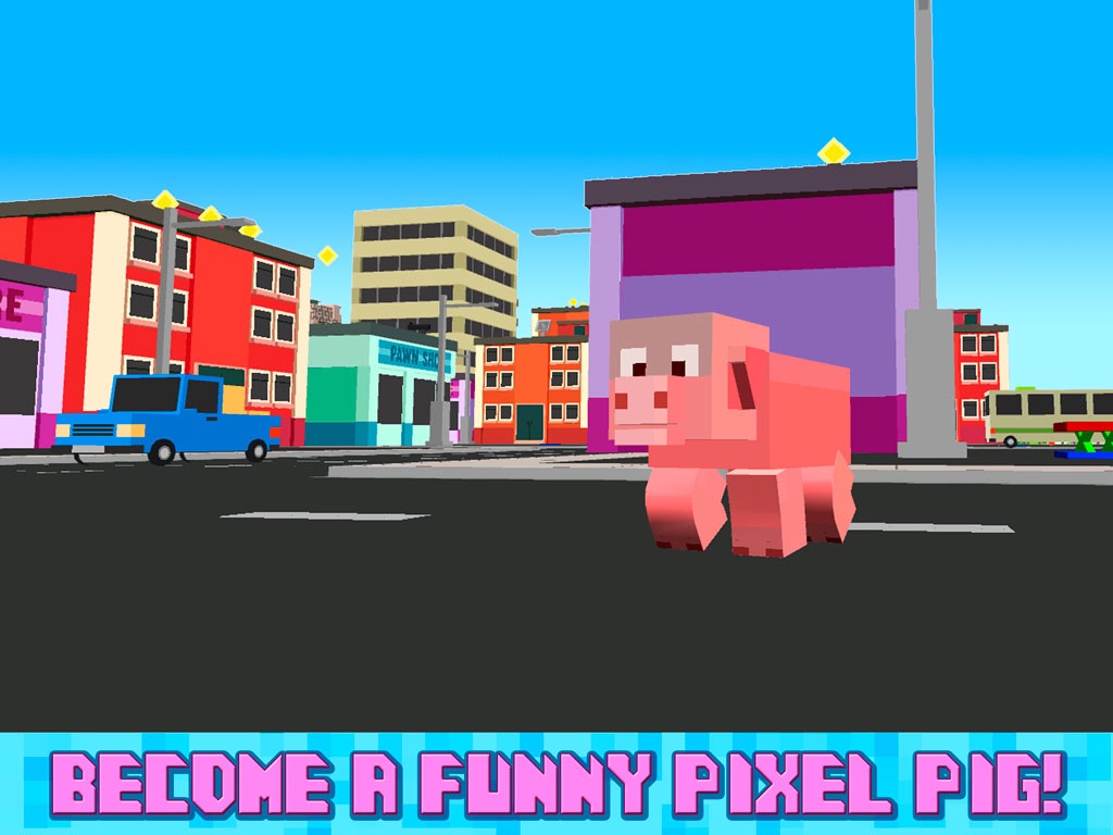 Be a very bad and nasty pixel pig – create a mess, annoy and scare citizens, and do other bad things with this crazy cubical pig simulator! Wreck havoc in the Pixel City, destroy everything on your way, break stuff and push people with Blockhead Pig City Rampage 3D!