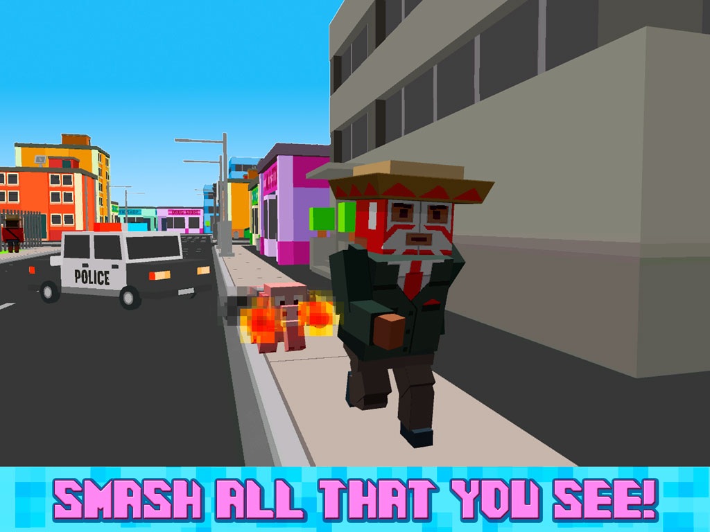 Explore the city made of blocks and pixels, but do it as a really mad creature! Run across the streets, crush and destroy – smash peaceful citizens, break their houses and crash their cars! Enjoy the life of cubical pig – live without doubts and regrets – with Blockhead Pig City Rampage 3D!