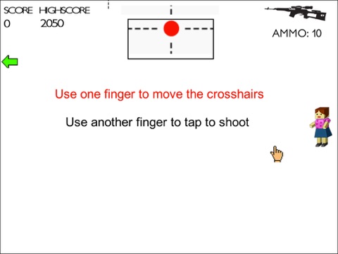 To aim, drag the crosshairs with one finger, and tap anywhere on the screen with another finger to shoot. Make sure to play using two fingers at the same time, this is a multi touch tap game. Shoot the killers in the center of the head for a higher accuracy score.