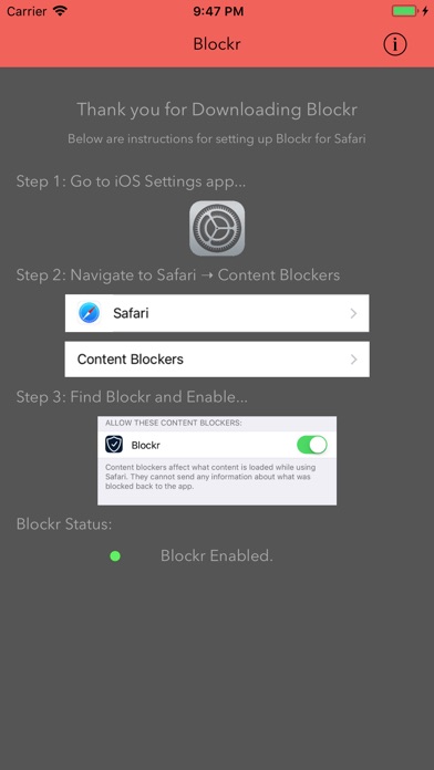 Blockr block ads in Safari not in other apps. To allow Blockr to block in Safari: