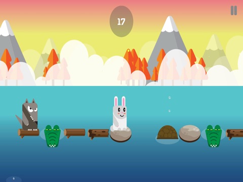 Tap the screen so the Rabbit can move forward. Be clever to chose wisely between jumping one step or double steps. Try not to fall into the water because of jumping on rotten wood or stay too long on turtles. You also can die as be eaten by crocodiles if you take a long time on them.