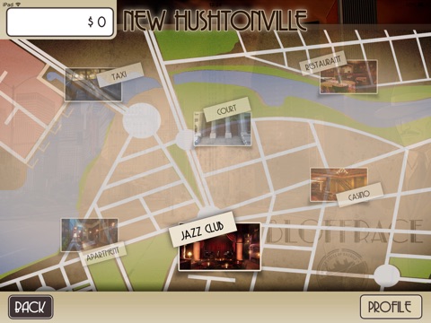 Travel to New Hushtonvillle to play the role of Detective Bloffrace. This game has six locations: casino, courts, Italian restaurant, apartment, Jazz Club and a taxi, where different crimes have been committed. Amongst a selection of suspects, the player must pick out the guilty one with clues found at the crime scene.