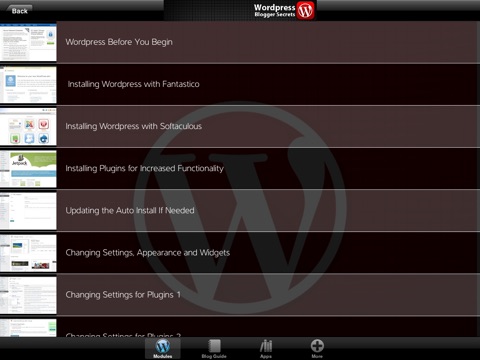 Wordpress Blogger Secrets can show you how to make money and work at home, online, using websites like Blogspot, Wordpress, Squarespace, Typepad, Tumblr, or whatever platform you might be blogging at. Bogging has grown vastly over the years. To some, its become a new way to go about marketing and making money. This instructional video app will teach you the secrets that paid bloggers have been using over the last decade to make huge profits while working from their computers in the comfort of their homes.