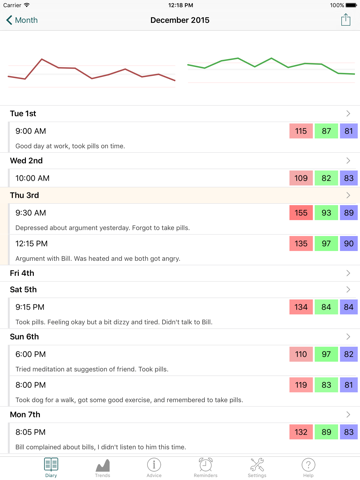 - Record multiple daily entries; view averages.