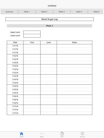 Blood Sugar Log sheet helps you record your blood sugar readings on a daily basis. The log has been designed for taking the readings four times per day. Special notes about the reading can also be entered at your convenience.