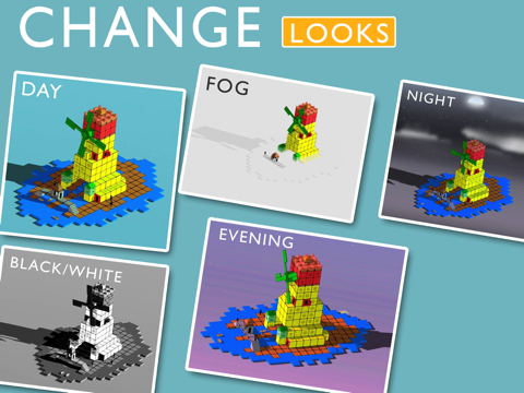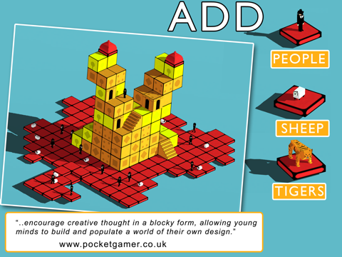 Create beautiful worlds with simple taps, from giant windmills to craggy castles and add animals, humans and birds for an amazing creative experience.