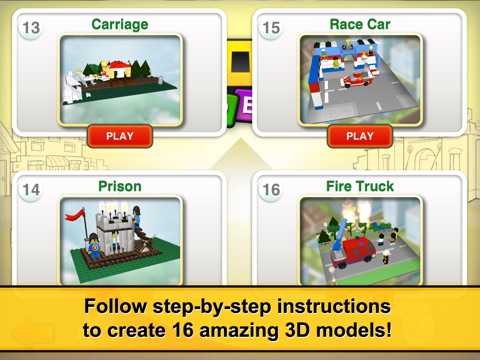 Brick by brick you become a better constructor. Build all the models and collect all the cups. Share your creations with friends and parents.