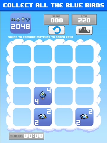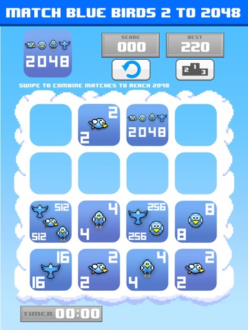 Keep combining tiles from 2 to 2048 with each one offering a different Blue Bird style.