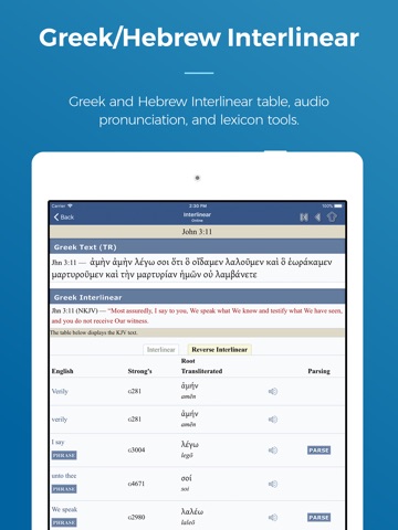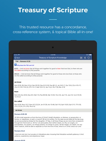 BLB is the best Bible application!!! All you need to do is tap on the verse and you can have dictionary, treasury of Bible knowledge, commentaries, different Bible versions, highlights and many more.