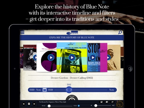 • Timeline: an interactive display of Blue Note history with advanced filters and presets