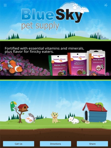 Thanks for downloading the app forBlue Sky Pet Supply. Here you can access supplies for Aquatics, Reptiles, Small Animals, Birds, and Dogs and Cats. Our mobile app is for our wholesale customers only. You must have an account to purchase from us. Please call us to set up your account.