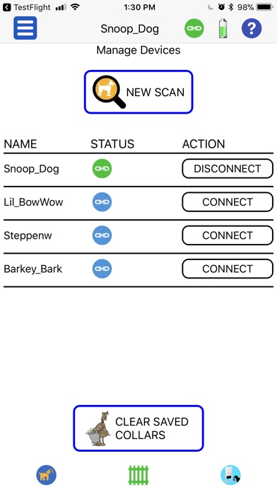 The app controls an unlimited number of collars and lets you create a unique profile for each, including dog name, commands, stimulus level and bark control settings. Includes in-app help screens.