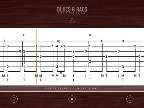 Blues & Rags is designed to let you learn at your own pace. If you have a little trouble keeping up with the app, thats not a problem. When you practice in Silent mode, you can adjust the scrolling of the tablature to a more comfortable speed; then just speed things up a little as you learn the piece.