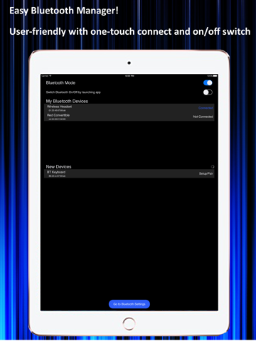 Quickly turn Bluetooth on/off by launching the app or use 3D touch if you have it. Easily connect to any Bluetooth device.