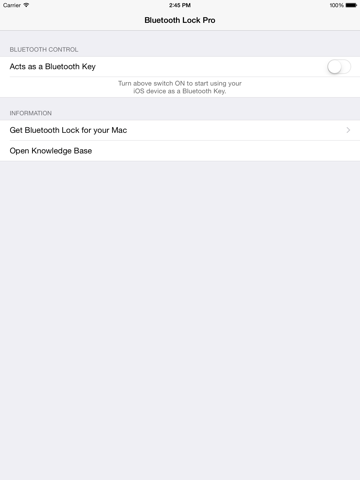 Bluetooth Lock Pro requires an iOS device with Bluetooth LE is running iOS 8 or later, and a Mac with Bluetooth LE (Low Energy) is running OS X Yosemite or later.