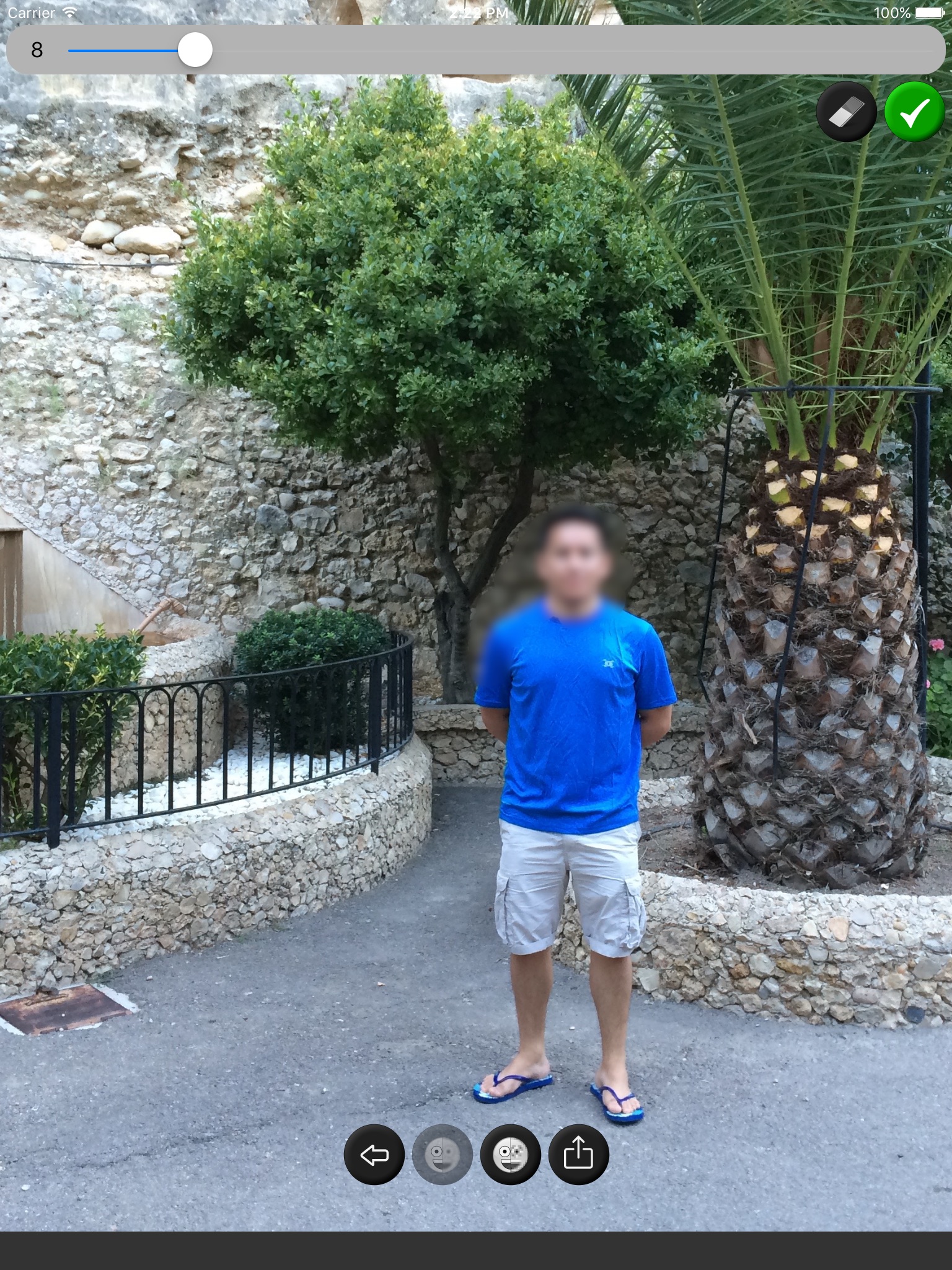 Blur or pixelate parts of your photos that you want to hide. To do so, you just have to pass your finger over the regions you want to obfuscate and done.