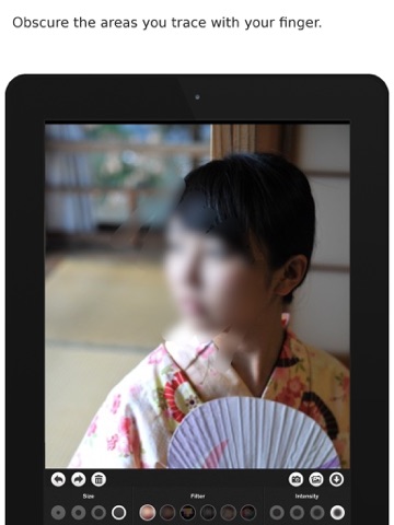 This application will create a pixelated mosaic when you trace your finger over an area of an image.