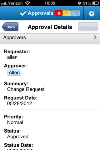 BMC Mobility for Approvals puts you in charge of IT decisions. You can receive and review, reject or approve, update and reassign service and change requests on your smartphone or tablet. This app is designed for the BMC-hosted mobility server, and should not be used with your own mobility servers.