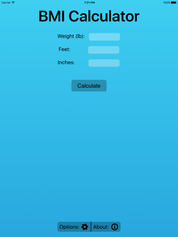 This app supports both imperial units (feet/inches) and metric units (pounds or kg). Other features of this app include switchable background colors and landscape mode support.