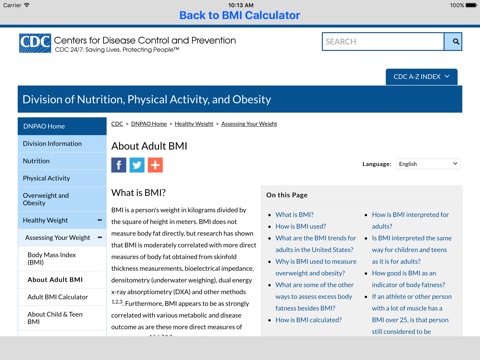 If you want to find out more, hit the information button to view the Centers for Disease Control & Prevention (CDC) website about Body Mass Index.
