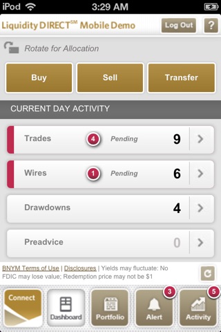 • Access your Liquidity DIRECT℠ account and work on the go. You can view account balances; perform, review, and approve trades and wires; as well as research market rates and yields. This application is only available for existing Liquidity DIRECT℠ clients.