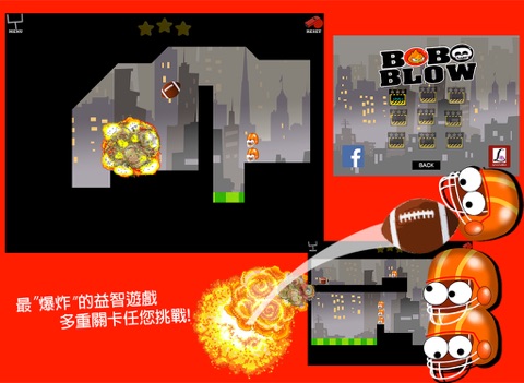 益智小遊戲,用炸彈把橄欖球炸到綠色區域以得分! 完成任務就可進入下一關。
