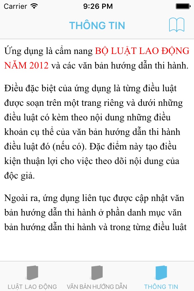 Ứng dụng là cẩm nang về Bộ Luật Lao Động Năm 2012.