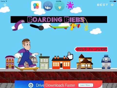 Help the Biebs skateboard between some tough brick walls and grab some swag.