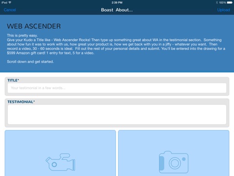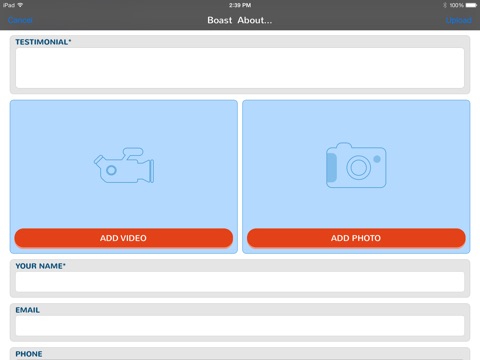 Client testimonials and customer reviews are a huge part of closing a sale. Boast makes it easy to collect video testimonials from your customers and share them with the world. Your customers can upload a testimonial directly from their mobile phone.