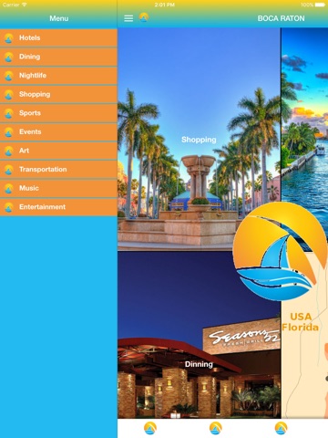 Boca Raton app is full of local business information. Locate local restaurants, shops, hotels by geo location. Find local events and entertainment. Get up to date local news.