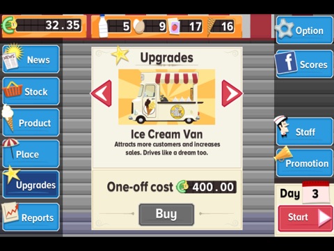 The players can compete with each other, sending their results to Facebook score, which compares them, allowing them to understand how good they are in selling ice cream.