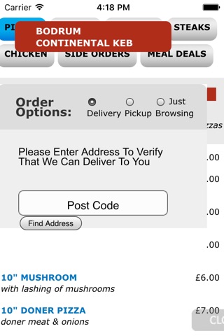 Bodrum Continental Kebab House mobile food ordering application