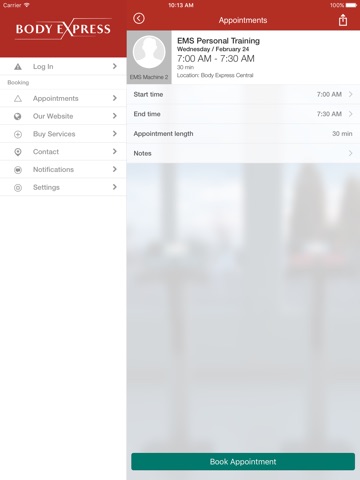 Download the Body Express App today to plan and schedule your 20 minutes EMS Personal Training Sessions! From this mobile App you can view availability, schedule your training session, make payments, view ongoing promotions, as well as view the studio locations and contact information. You can also click through to our social pages! Optimize your time and maximize the convenience of scheduling 20 minute EMS Personal Training directly from your device! Download this App today!