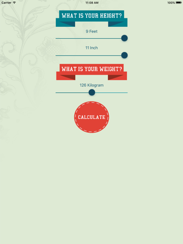 Just swipe your finger over the measure tapes to enter your weight and height and get the BMI value and also your ideal weight range.