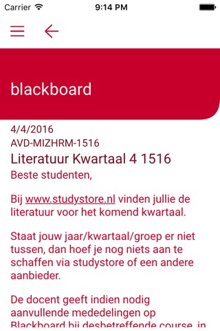 - Blackboard berichten bekijken, en een notificatie krijgen als er een nieuw bericht is.
