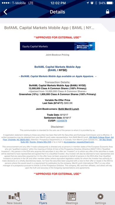 There is no charge to download this App from the Apple App Store. Your standard data plan rates will apply. Clients of Bank of America Merrill Lynch can access BofAML Capital Markets on their iPhone or iPad, available for download in the iTunes App Store. Thank you for your support and feedback! Please keep it coming."
