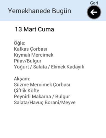 Yemekhanede Bugün