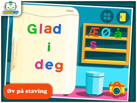 Med denne norskproduserte appen kan du la barna utforske det norske alfabetet gjennom å fargelegge store og små bokstaver som så forvandles til kjøleskapsmagneter! Sammen kan dere lytte til både bokstavnavn og bokstavlyd. Bruk bokstavene du lager til å stable enkle ord på kjøleskapet, for så å ta bilde av kunstverket! Morsom og enkel, med fokus på det pedagogiske - uten forstyrrende elementer som reklame.
