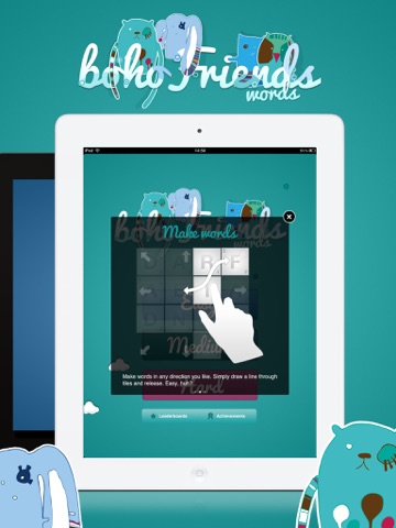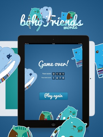 Have you ever tried Scrabble? Crosswords? Or maybe Sudoku? If yes, you’ll easily get familiar with bohoFriends. If no, let me give you a little explanation: the objective is to create as many words as possible from the letters on the board. You can connect them in any direction (up, down, left – yes, “backwards”- right and askew). The longer word you create the more points you get. The same stuff goes with combos which you may get for speed word creating. There are also many achievements you may share, together with your high scores, with your friends using Game Center. Last but not least – you need to remember the time which is running out faster with every difficulty level.