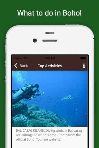 Bohol Guide is your complete and portable guide to Bohol. The app provides information on places to go in Bohol, from the famed Chocolate Hills to the beach paradise of Panglao Island and the beautiful Anda town. It also lists things to do during your visit from getting close to the tarsiers, visiting historic churches built during the Spanish times to sampling local delicacies.