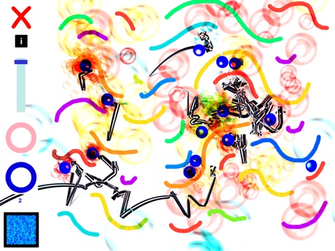 Boinkss is a sound toy that uses simulated physics to create shifting sonic patterns and freeform sequences. The player draws colourful lines and shapes, then drops bouncing balls into their creation. The collisions of the balls results in dynamic and varied sounds. The different colours in the palette relate to different sound types, which can be combined in many different ways.