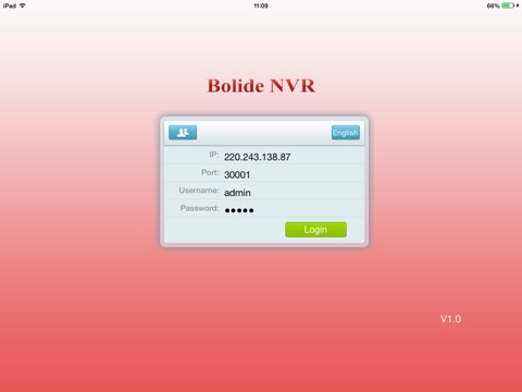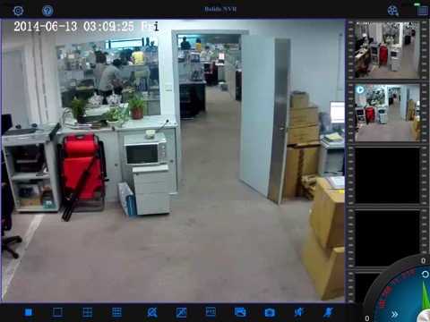 Belide NVR is an NVR(network video recording) monitor the IOS moblie platform client.User can log in Bolide proprietary NVR devices to watch live video and recording event. The software can simultaneously view up to 9-way real-time videos streams from IP Devices, single play supports audio playback,PTZ control,real-time recording.