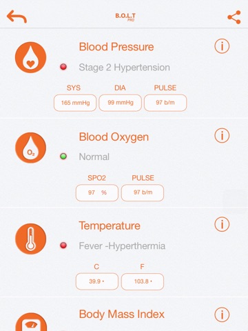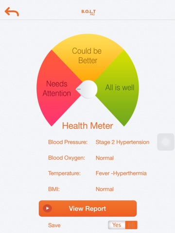 Want to check your health vitals? Want to know whether your health is on track? It’s really simple now. Get your health checked with B.O.L.T Pro ,an easy way to keep a tab on your health. Whether it is your blood pressure, or blood oxygen level, or your body temperature, you have it all available in the App Store with B.O.L.T Pro. Your best friend for life that comes handy at all times. The perfect health monitoring app to have on your iPhone or iPad, B.O.L.T Pro offers you much more than just giving you a normal health check.