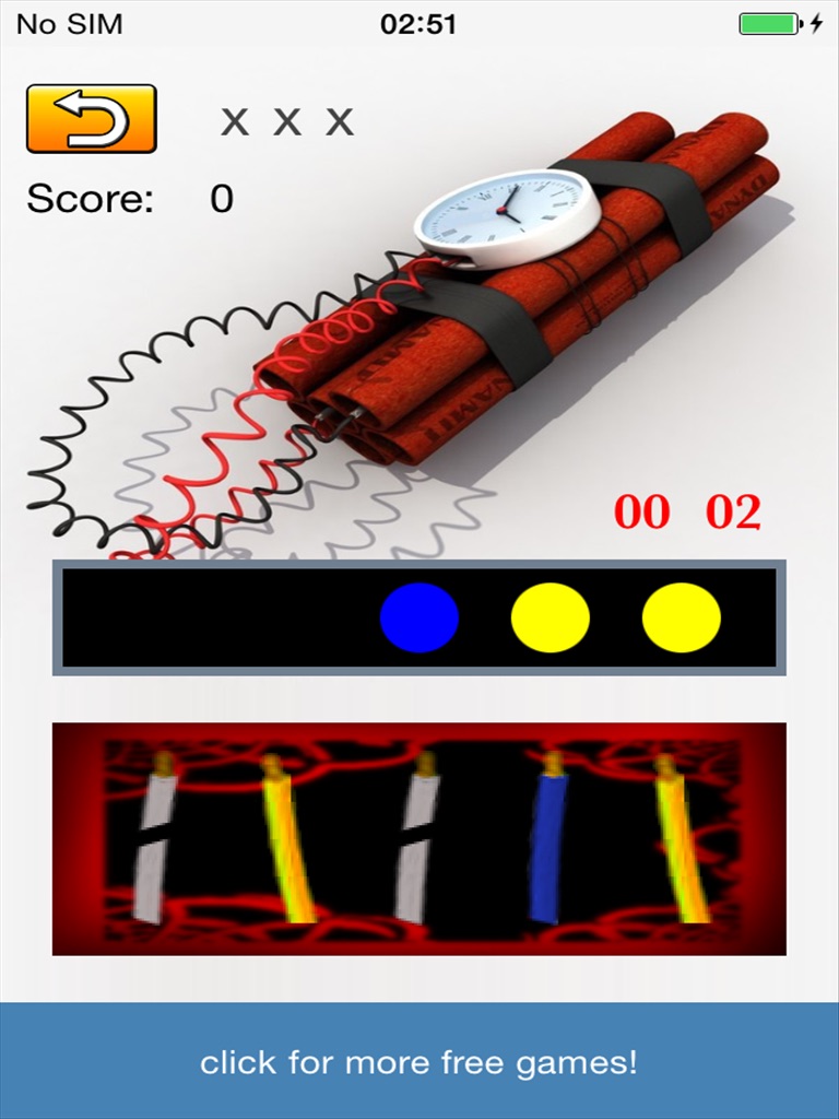 Cut the right wires in the right order and defuse the bomb (you have only few seconds to do this)
