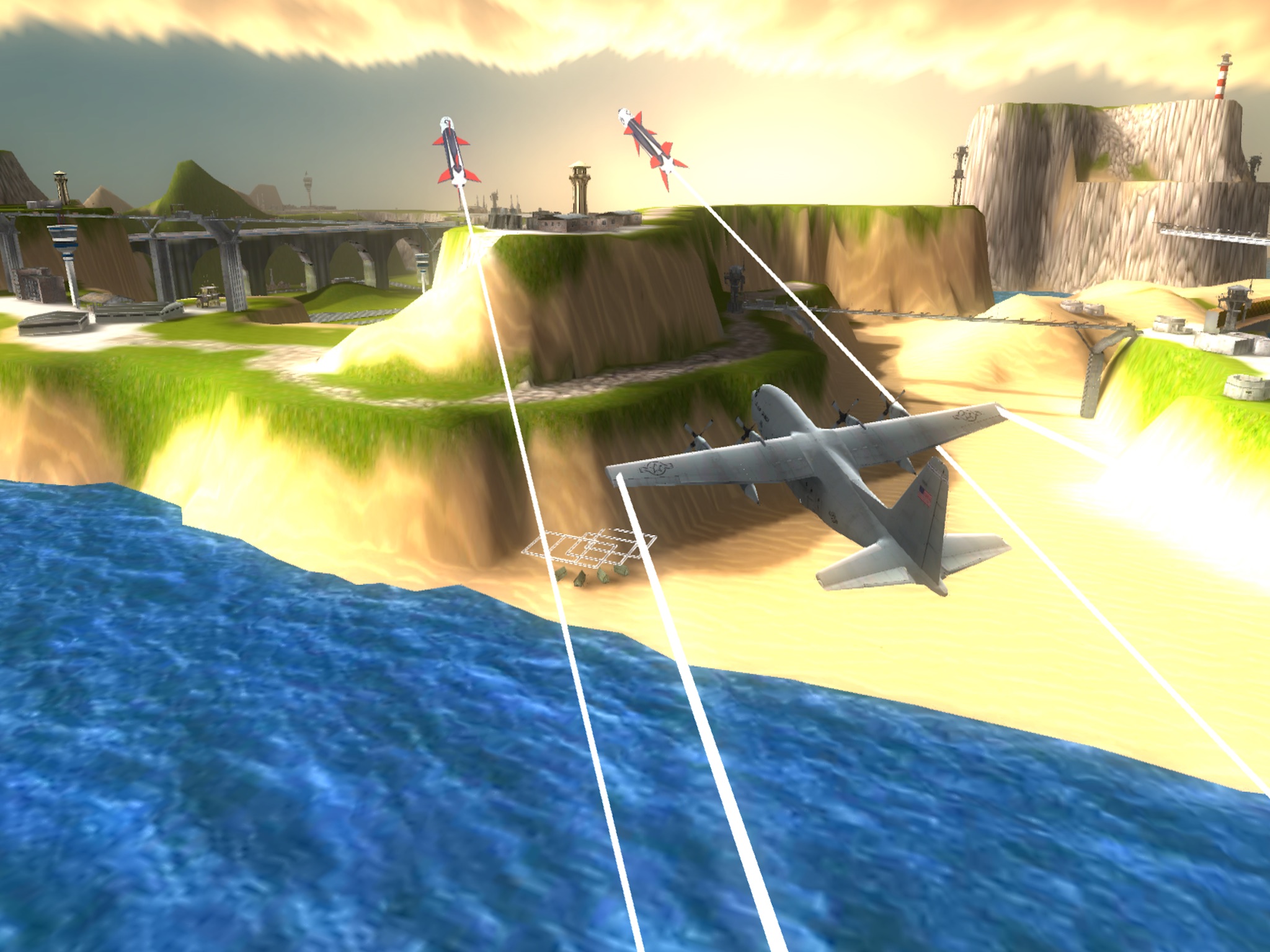 Bomber Plane Simulator 3D Airplane Game is an amazing 3D Bomber Plane Simulator Flying Game. Learn the basics of flying the Bomber Plane by completing missions, learning to fly with an awesome hangar full of Army Airplanes and dropping missiles and bombs on bases, hangars, and watchtowers! Do you have what it takes to fly through the air to win the war? Complete with 5 amazing airplanes and 20 unique levels to bring an incredible experience to you!