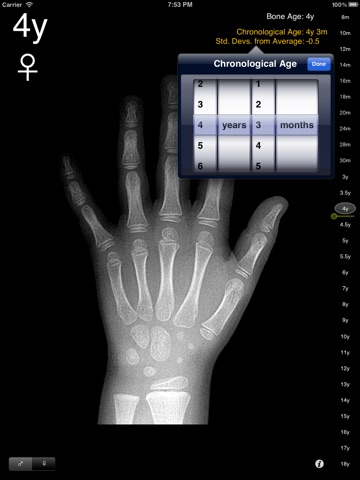 Es fehlen Tabellen und besser noch ein bone age calculator mit Eingabe von Grösse und Gewicht. Gern auch noch Messmöglichkeit und Importmöglichkeit eigener Bilder.